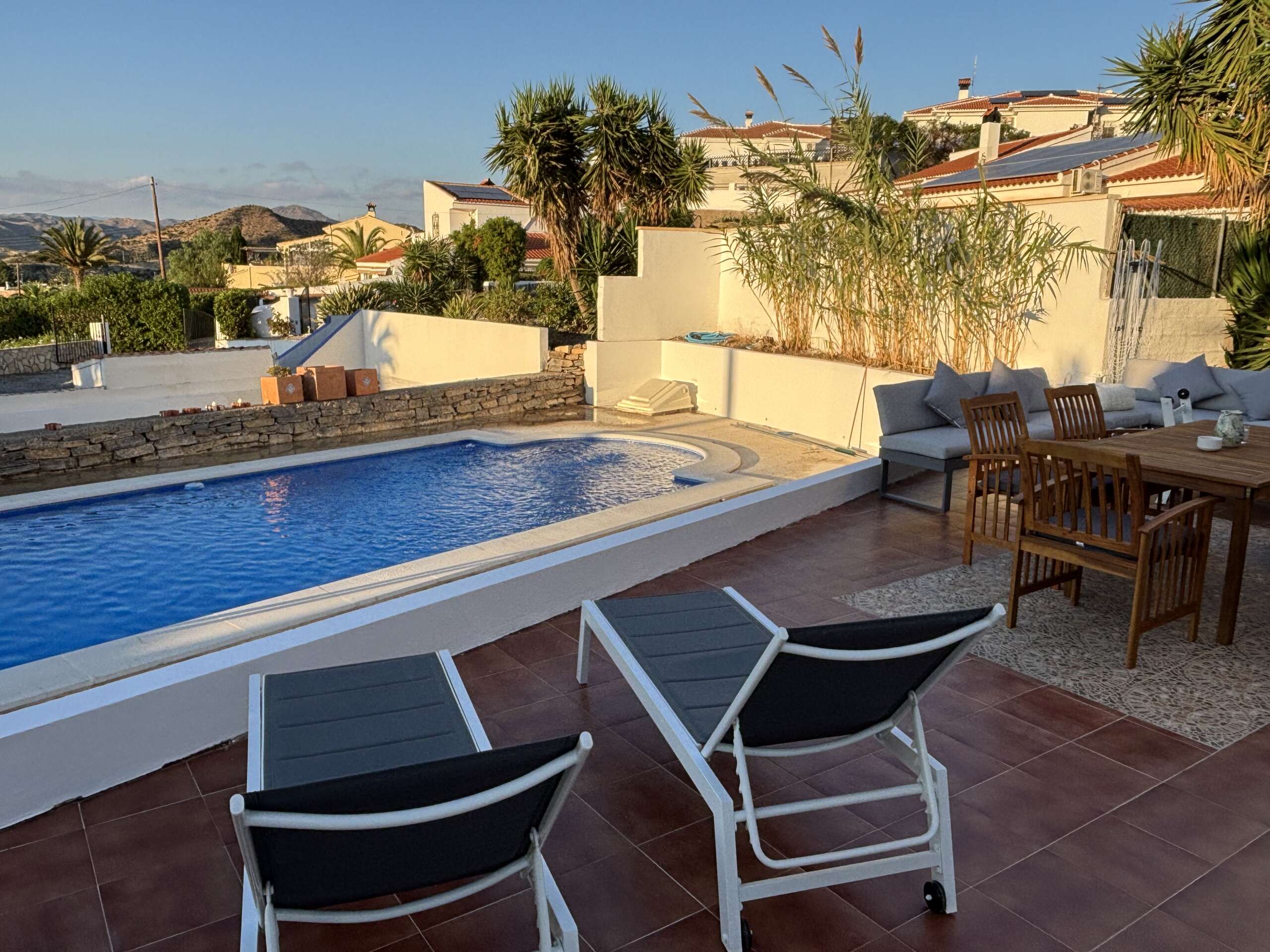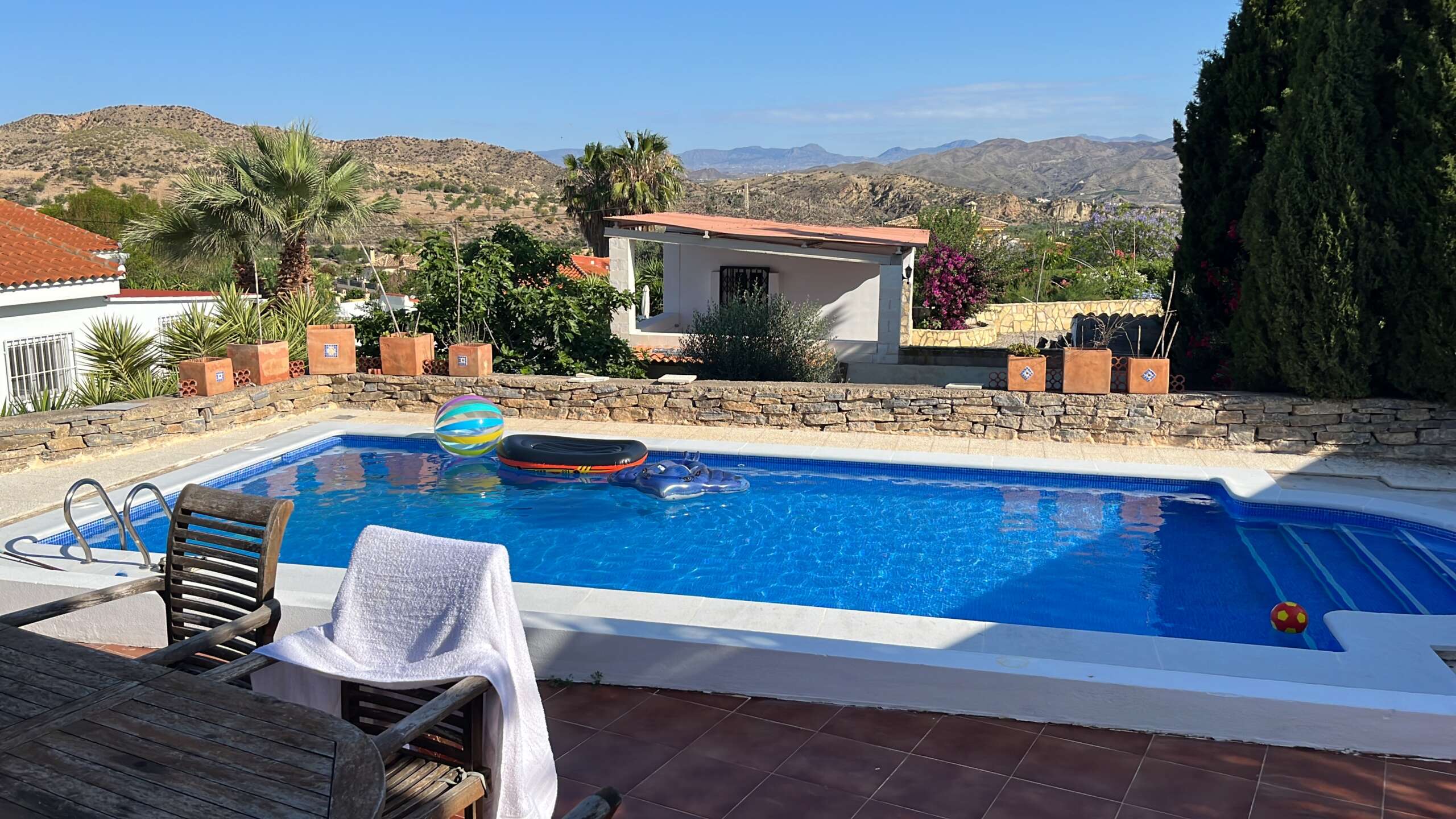Private villa set in the town of Arboleas (Los Carrascos), 35 minutes from Vera Playa and 15 minutes from Albox. The property consists of 3 bedrooms. The open plan living and dining area looks onto the terrace, garden and swimming pool. The property has Wi-Fi and air conditioning throughout.